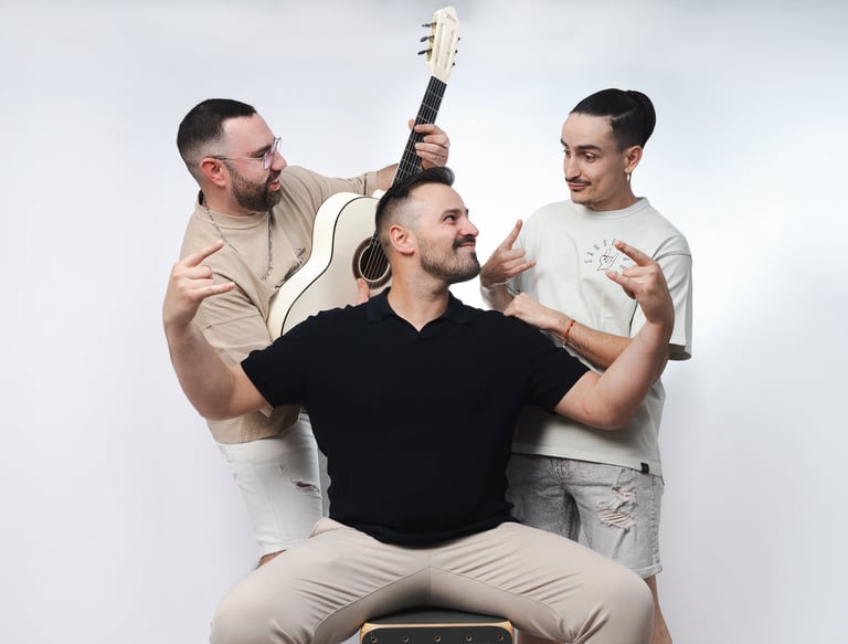Nos movemos en diferentes estilos como la Rumba, el Pop, el Rock, el Flamenco o el reguetón, siempre haciendo cada tema a nuestra forma de entender la música de una manera divertida y única.